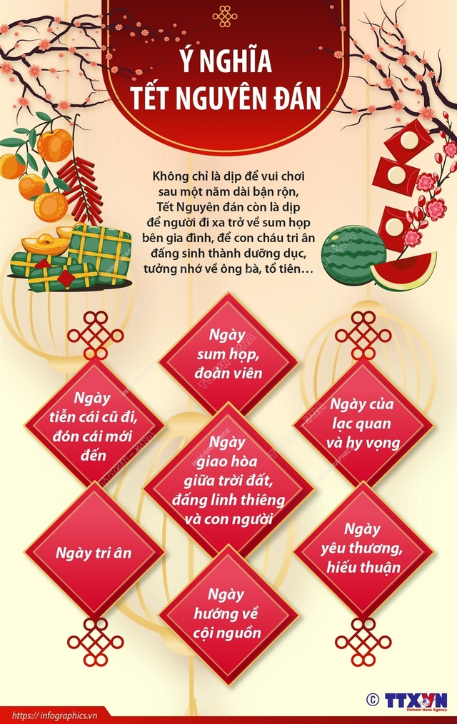 - Văn hóa: Gìn giữ truyền thống dân tộc như thờ cúng tổ tiên, gói bánh chưng, chúc Tết.