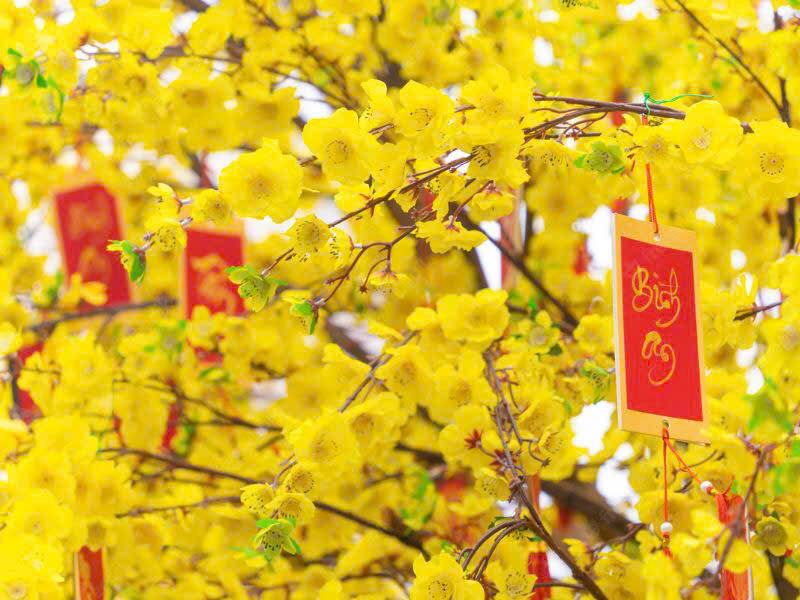 Vẻ đẹp ngày Tết của người Việt thể hiện rõ qua nhiều phong tục và hoạt động đặc sắc. Mâm ngũ quả, hoa đào, hoa mai, cây quất được bày biện trang trọng trong nhà, tượng trưng cho sự may mắn và thịnh vượng. Trang phục áo dài truyền thống với màu sắc tươi sáng cũng góp phần làm không khí Tết thêm phần rộn ràng.
